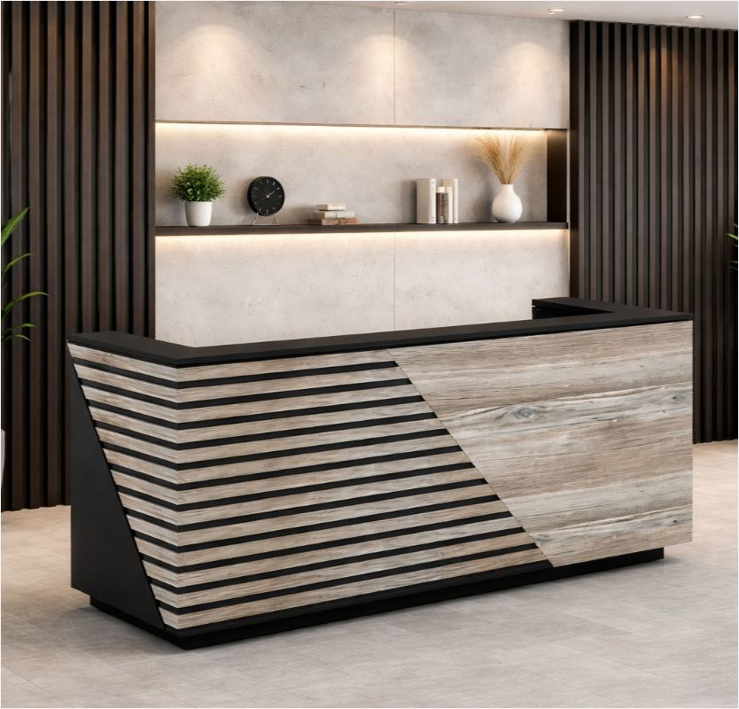 يقدم كوانتر استقبال RCGL4 بتصميمه العصري والمميز والذي يتميز بخطوطه السوداء والبيضاء الجذابة خيار مثالي لأي مكتب أو مساحة استقبال تم تصنيع هذا الكونتر من خشب عالي الجودة مما يضمن لك متانة تدوم طويلة بالإضافة إلى لمسة جمالية تضيف تضيف على المكان طابع أنيق وعصري تصميمه الفريد يجعله يتناسب مع مختلف أنماط الديكور سواء كانت تقليدي أو حديثي