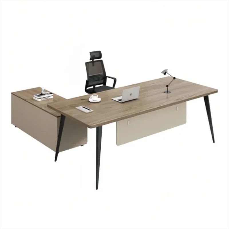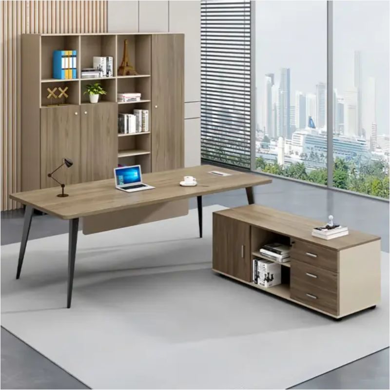 تصميم أنيق، انسيابي، يجمع بين صفاء الخشب وصلابة المعدن، ليمنحك مكتبًا يليق بمكانتك ، ويعكس ذوقك الرفيع في أدق التفاصيل.